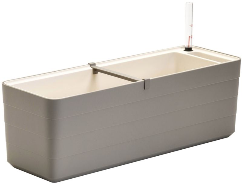 Balkónový kvetináč Berberis 60 cm taupe vám pomôže pestovať rastliny doma. V nádobe môžu rásť kvety, bylinky a drobná zelenina. Do kvetináča môžete zasadiť jednu alebo niekoľko rastlín. Výrobok má nádržku na vodu s indikátorom hladiny vody. Vďaka tomu sa nemusíte starať o pravidelné zavlažovanie rastlín. Naplňte nádržku na vodu a rastliny si ju načerpajú podľa svojich potrieb. Indikátor vás bude informovať o potrebe doplnenia zásobníka. Nádrž má kapacitu štyri litre. Balkónový črepník Berberis taupe pojme jedenásť litrov zeminy. Produkt má netradičný štýl. Horná časť hrnca je tmavohnedá a vložka je biela. Moderný dizajn z neho robí ideálne riešenie pre súčasné aranžmány. V našej ponuke nájdete aj ďalšie hrnce zo série Berberis.