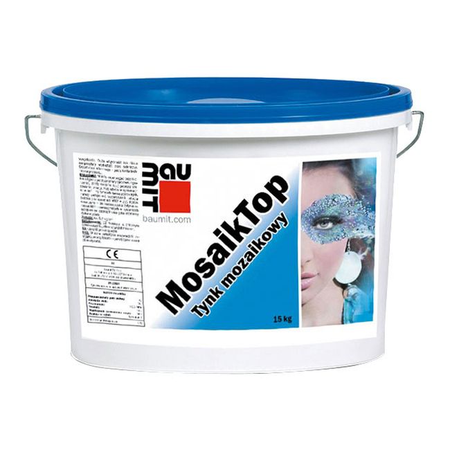 Baumit MosaikTop je farebná dekoratívna omietka, ktorá umožňuje získať atraktívny povrch na fasáde domu. Odporúča sa najmä na dokončenie stien v oblasti sokla. Vytvára mozaikovú vrstvu farebného kremenného kameniva. Výrobok má hydrofóbne vlastnosti, t.j. odpudzuje molekuly vody, vďaka čomu je obzvlášť odolný voči poveternostným vplyvom, ako sú silné dažde, mráz alebo slnečné žiarenie. Je veľmi univerzálny - možno ho použiť na vápennocementové, cementové a sadrové omietky, ako aj na betónové a minerálne podklady. Produkt je dostupný v rôznych farebných variantoch. Akrylátová omietka je pripravená na použitie. Poskytuje elegantný povrch a trvácnosť po mnoho rokov.