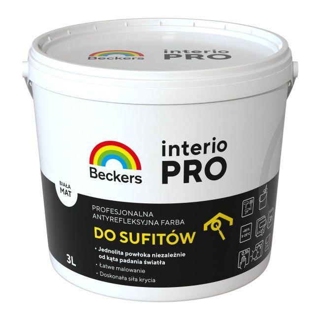 Biela antireflexná farba Beckers Interio Pro je výbornou voľbou pre každého, kto chce rýchlo premaľovať miestnosť. Neuveriteľne efektívne produkty urýchlia postup vašej práce. Prvá vrstva by mala poskytnúť uspokojivý efekt. Po natretí má povrch hlboký matný povrch, ktorý dodáva miestnosti úplne nový charakter.