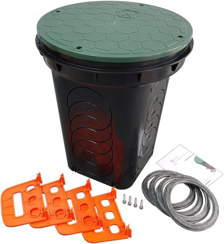 Postarajte sa o funkčnú kanalizáciu a vyhnete sa mnohým problémom. Dôrazne odporúčaným prvkom tohto systému je separačná komora D300 AQR. Tento produkt presne oddelí predčistenú odpadovú vodu a nasmeruje ju na miesto, kde prebieha prirodzené čistenie v zemi. Dokáže rozdeliť splašky na priesakové drenážne závity. Úspešne ho využijete na vsakovanie dažďovej vody alebo na technické funkcie v rôznych inštaláciách. Separačná jamka je vyrobená z polyetylénu s vysokou hustotou. Pevná konštrukcia s výškou 410 mm a priemerom poklopu 300 mm je vysoko odolná voči poškodeniu. Sada obsahuje štyri tesnenia vhodné na inštaláciu do šachiet.