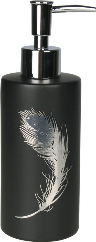 Čierny dávkovač mydla Piume s účinnou pumpou výrazne uľahčuje umývanie rúk. Dostanete s ním toľko tekutín, koľko potrebujete a postaráte sa o hygienu. Za pozornosť stojí jej jedinečný, elegantný dizajn. Tento model má čiernu farbu. Dodatočne ho zdobí strieborná grafika s pierkom, vďaka čomu pôsobí veľmi esteticky.