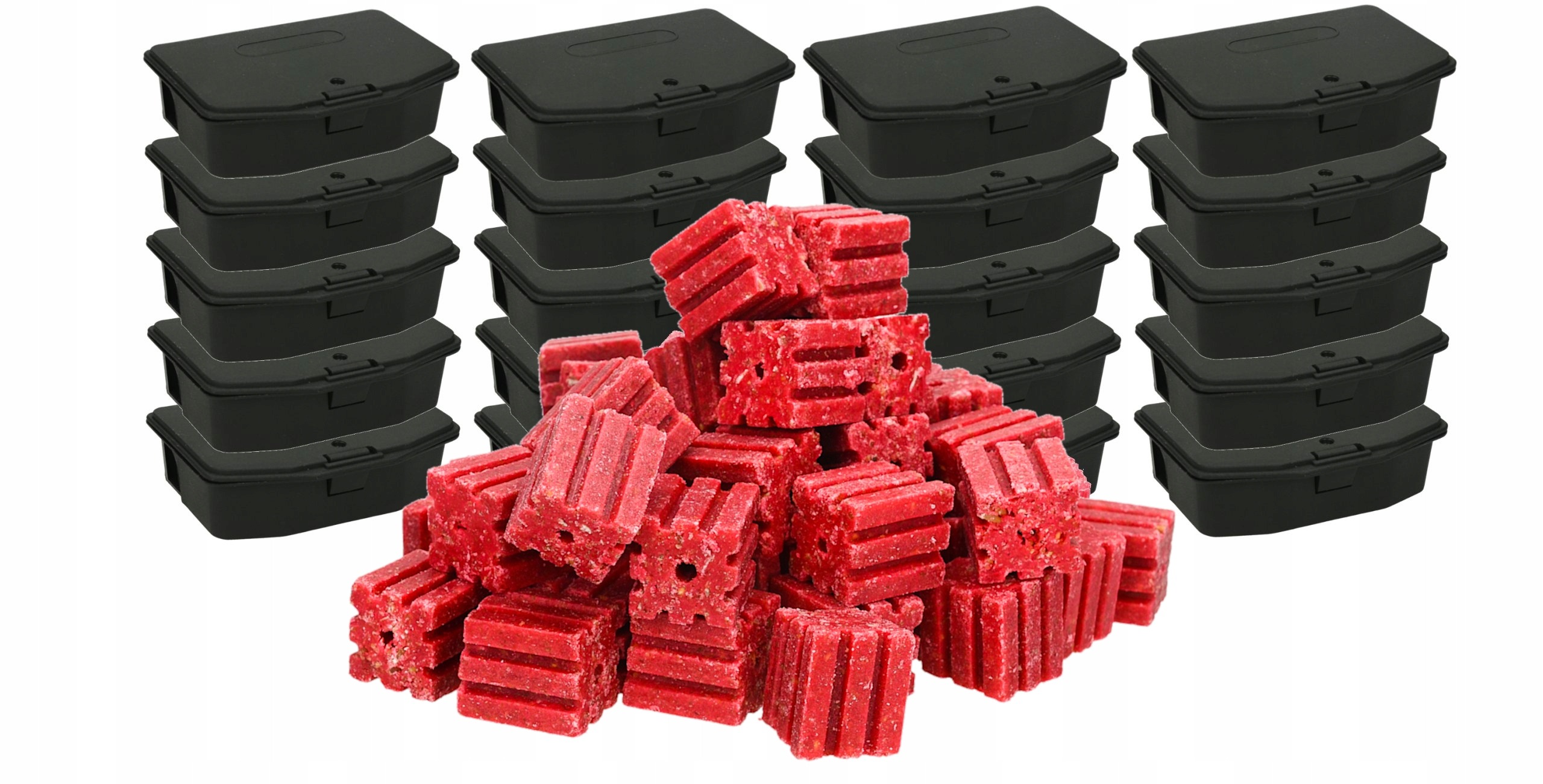 Krmítko na potkany 20 kusov - sada obsahuje 500 gramov jedu Ratimor vo forme kocky
