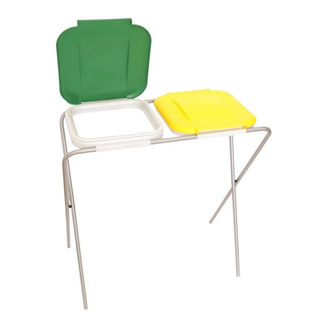 Stojan je určený na triedenie odpadu, takže poslúži doma aj vo verejných priestoroch. Svojmu účelu bude perfektne slúžiť dlhú dobu, keďže je vyrobený predovšetkým z kovu. Dvojitý model má zelené a žlté kryty, takže položka je ideálna na skladovanie skla a plastov.