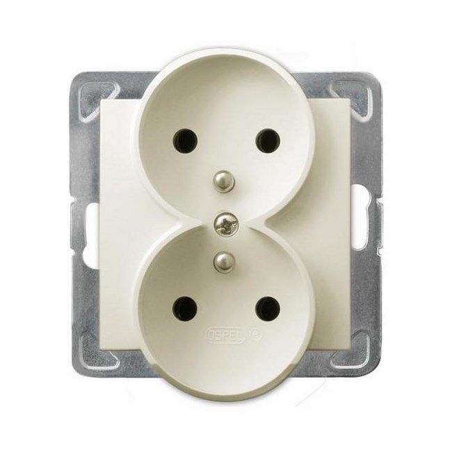 Dvojitá zásuvka s uzemnením je štandardný produkt, ktorý umožňuje pripojiť dve zástrčky súčasne. Schopnosť uzemniť produkt vám umožňuje vyhnúť sa situáciám, keď sa v dôsledku poškodenia zariadenia objaví na jeho kovovom kryte elektrické napätie. Produkt je namontovaný vo vnútri 60 mm širokých škatúľ pod omietku.