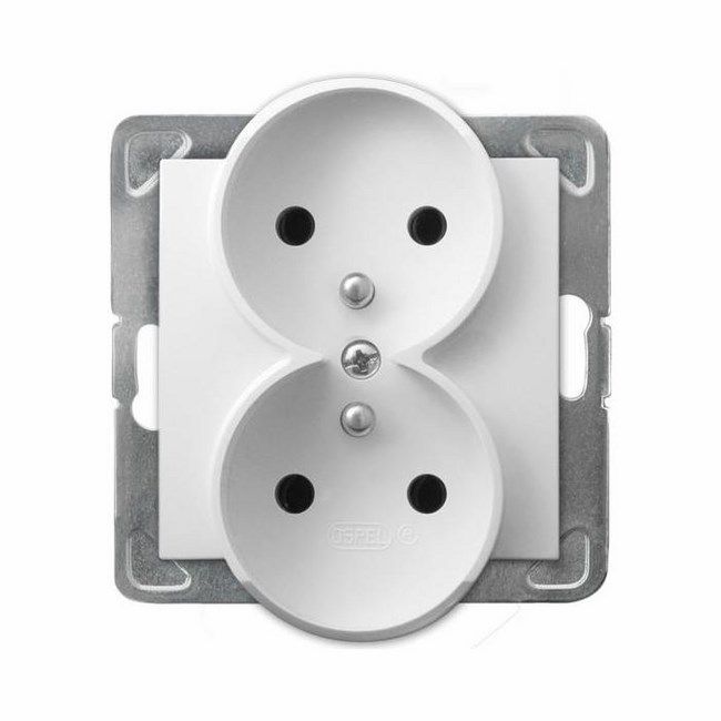 Elektrická zásuvka s dvoma vstupmi umožňuje súčasne pripojiť dva prijímače elektriny. Okrem toho je výrobok vybavený uzemňovacími kolíkmi, ktoré chránia zariadenia a zaisťujú bezpečnosť používateľov. Výrobok je vyrobený z bieleho polykarbonátu a je určený na zapustenú montáž. Predajne Castorama majú široký sortiment elektrických zásuviek.