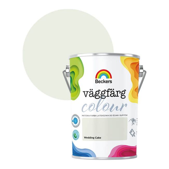 Emulzná farba na svadobnú tortu Beckers Vaggfarg Color je produkt vytvorený na maľovanie stropov a stien. Odporúča ho Poľská alergologická spoločnosť - je vhodný do interiérov obývaných alergikmi, vrátane tých najmenších. Béžová farba s matným povrchom vyzerá dobre vo väčšine interiérov. Farba je odolná voči škvrnám.