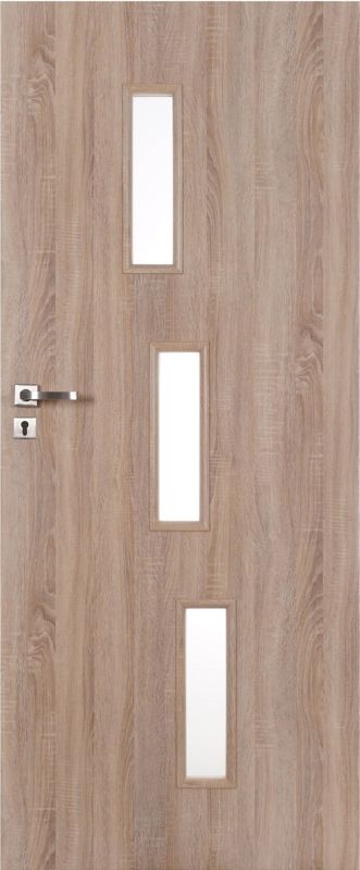 Pravé izbové dvere Roma 80, dub sonoma, sa vyznačujú nadčasovým dizajnom. Svetlý model má povrch podobný drevu a je obohatený o tri saténové presklenia. Dvere budú vyzerať dobre v elegantnom a klasickom interiéri. Model z kolekcie Roma je vyrobený z odolnej MDF dosky. Vďaka tomu je list odolný voči poškodeniu v dôsledku intenzívneho používania. Výrobok je potiahnutý fóliou, takže jeho povrch si zachová estetický vzhľad po celé roky. Pravé rímske izbové dvere dub sonoma dokonale izolujú hluk. Vďaka tomu budú dobre fungovať v miestnosti určenej na odpočinok. Do kancelárie sa bude hodiť aj model s dobrou akustickou izoláciou. Krídlo vám poskytne pohodlné pracovné podmienky. Pozrite si aj našu ponuku dverí bez skla.