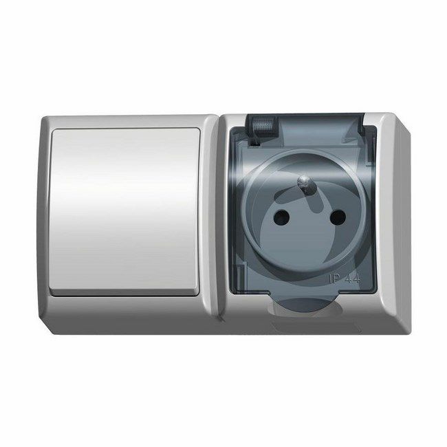 Jednokonektor a zásuvka Ospel Fala, povrchová montáž, súprava biela/dymová