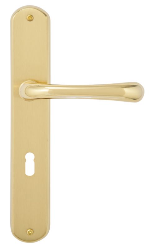 Mosadzná kľučka na kľúče Schaffner Gaja je produkt, s ktorým môžete interiérové dvere esteticky dokončiť, čím sa stanú elegantnými a funkčnými. Tento výrobok má podlhovastý znak s otvorom na kľúč. Je k dispozícii v mosadznej farbe - zlatá - s dvoma typmi povrchovej úpravy: matná a lesklá. Vyznačuje sa vysokou kvalitou spracovania.