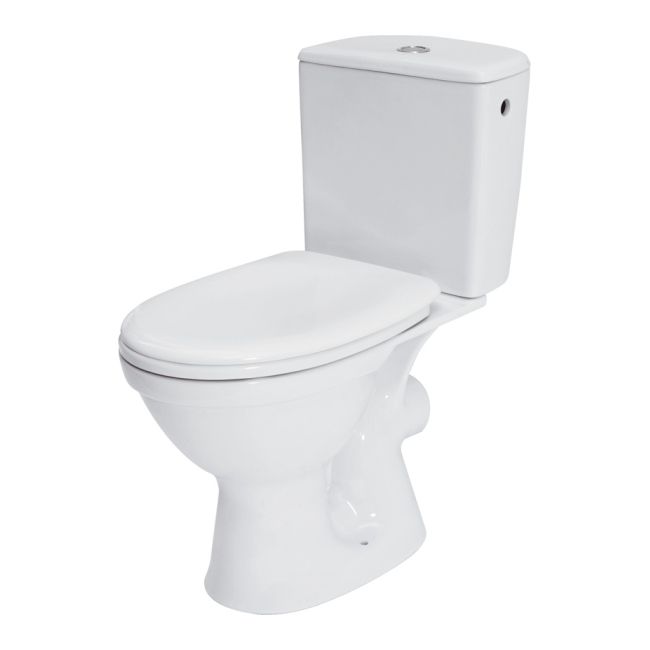 Kompaktná toaleta je nevyhnutným prvkom vybavenia každej kúpeľne, preto nájde uplatnenie vo vašej domácnosti. Dá sa použiť aj na toaletách vo verejných budovách. Výrobok je vyrobený z keramiky, materiálu s vynikajúcou odolnosťou - takže Vám bude dlho bezchybne slúžiť pri zachovaní estetických hodnôt. Kompakt je biely, takže sa perfektne hodí ku všetkej sanitárnej keramike v kúpeľni. Súčasťou sady je aj pomaly sa zatvárajúca doska, takže si tento prvok nemusíte kupovať sami. Naša ponuka zahŕňa široký výber kompaktov, umývadiel, vaní a pod., aby ste si mohli úspešne doplniť vybavenie vašej kúpeľne.