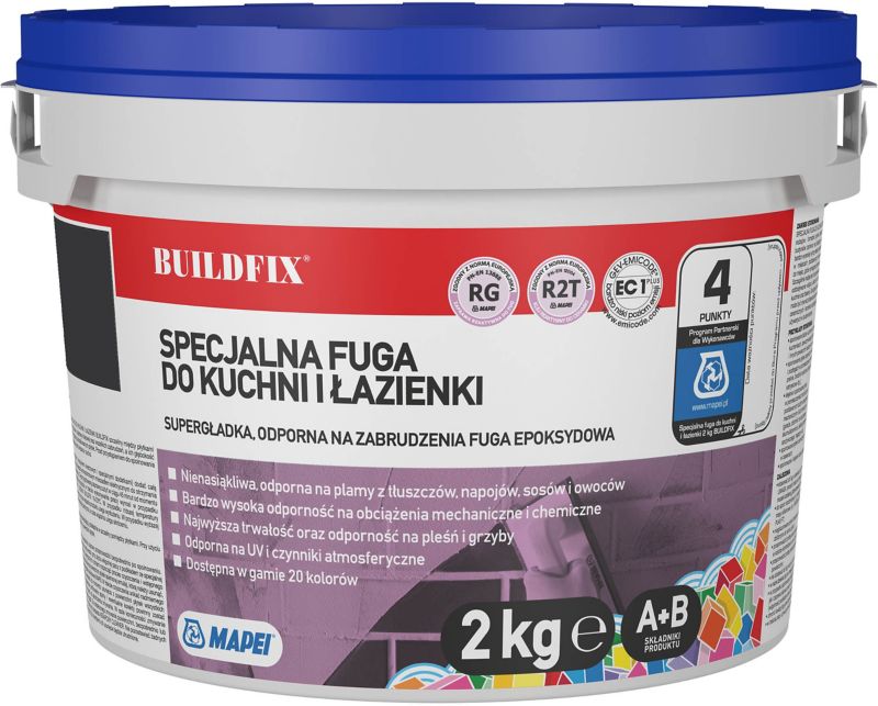 Kuchynská a kúpeľňová škárovacia hmota Buildfix poskytuje elegantný povrch stien a podláh v miestnostiach, kde chcete zachovať vysoký štandard čistoty. Škárovacia hmota po vyčistení nestráca čiernu farbu a je možné ju očistiť od nečistôt. Pretože po aplikácii rýchlo schne, umožňuje, aby boli miestnosti pripravené na použitie v krátkom čase.
