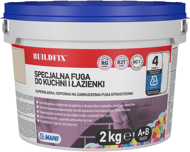 Epoxidová živicová malta Buildfix je určená na škárovanie medzier medzi keramickým materiálom kladeným na steny a podlahy. Silne lepivé prísady znamenajú, že ho môžete použiť aj ako lepidlo na kobercové materiály z kameňa alebo keramiky. Malta sa odporúča najmä do kuchýň, kúpeľní a iných miestností, kde je potrebné udržiavať vysokú hygienu a čistotu. Po vytvrdnutí je hmota odolná voči nečistotám, preto sa dá dezinfikovať a ľahko sa udržuje v dokonalej čistote. Pretože po aplikácii rýchlo schne, umožňuje rýchle ukončenie dokončovacích prác a uvedenie miestnosti do užívania. Je k dispozícii v mnohých farbách, z ktorých si môžete vybrať, čo uľahčuje prispôsobenie vašim potrebám.