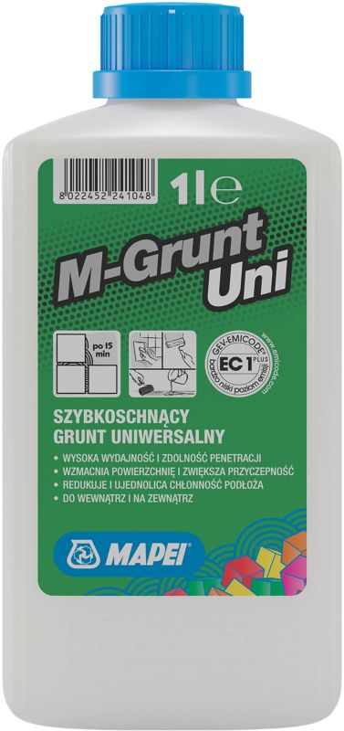 - M-Grunt Uni po nanesení a zaschnutí obmedzuje a reguluje nasiakavosť podkladu (zabraňuje príliš rýchlemu vysychaniu a tvorbe mikrotrhlín v nanesených vrstvách), zlepšuje priľnavosť a uľahčuje nanášanie ďalších vrstiev.