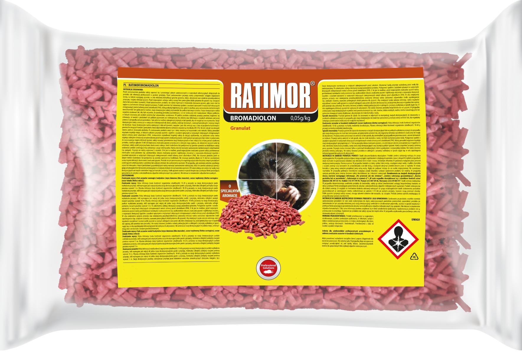 - Zawiera bromadiolon- antykoagulant II generacji stosowany przez profesjonalne firmy DDD