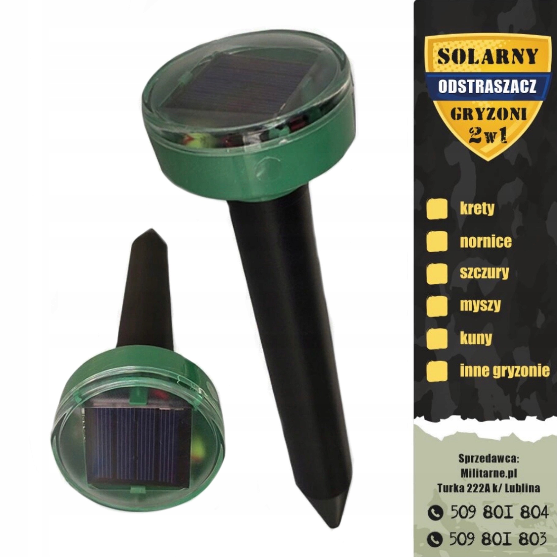 Aukcja dotyczy 1 szt. odstraszacza, który posiada 2 funkcje... 2w1 Solarny odstraszacz szkodników: kretów, nornic, kun, gryzoni, myszy szczurów i innych...