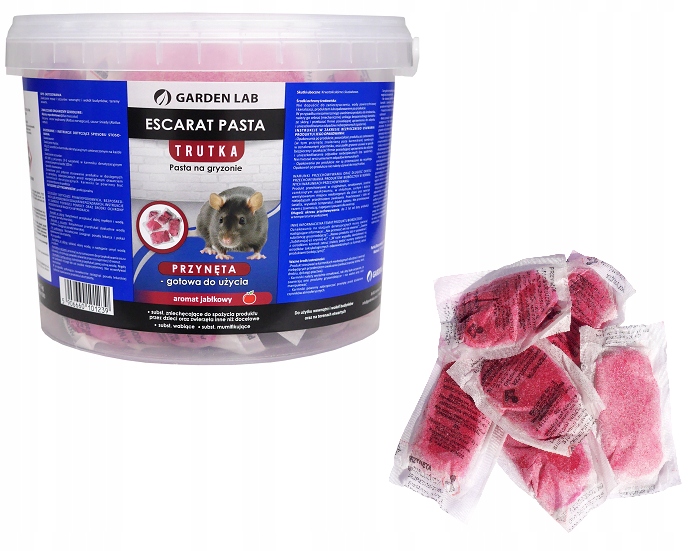 Escarat Pasta w formie pasty jest idealnym posiłkiem dla gryzoni takich jak myszy i szczury ze względu na zawartość w produkcie aromatu jabłkowego, któremu nie oprze się żaden gryzoń.
