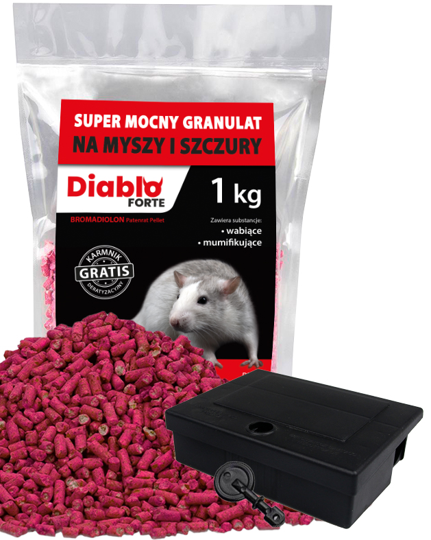 Zwalcz szkodniki przy pomocy skutecznej trutki na myszy i szczury Diablo Forte, granulat 1kg