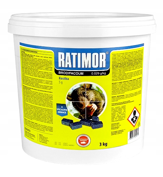 Ratimor Brodifacoum są to bloczki woskowe o wadze 5 g do zwalczania szczurów (Szczur wędrowny) i myszy (Mysz domowa) we wnętrzach i wokół budynków.