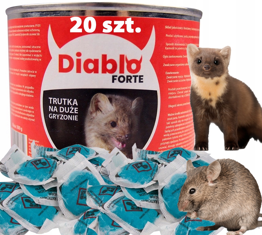 ➡️ Diablo Forte to bardzo skuteczna trutka w postaci saszetek z pastą, przeznaczona do zwalczania dużych gryzoni, ze szczególnym uwzględnieniem myszy oraz szczurów.