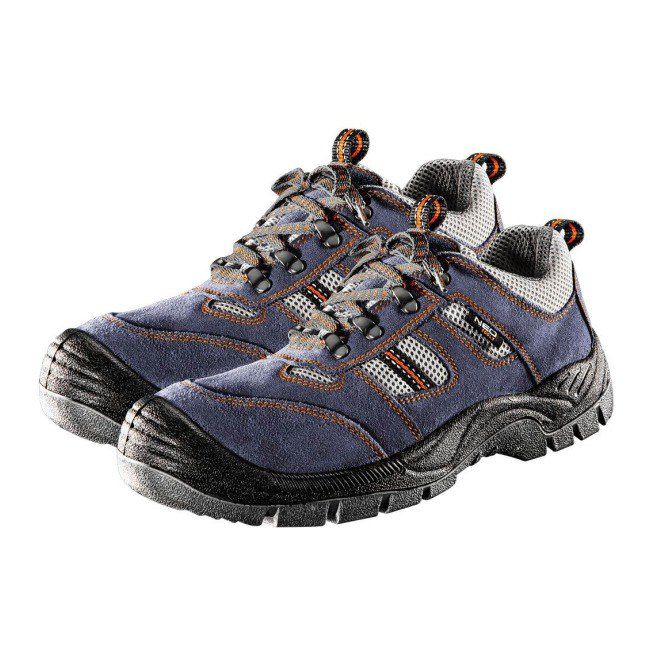 Pracovná obuv NEO semiš CE je vhodná do dielne, skladu a na mnohé iné práce. Sú vyrobené z priedušnej látky. Ochranu zabezpečuje kovová vložka, nárazuvzdorná tužinka a protišmykový povrch. Topánky tlmia nárazy. Behúň je odolný voči mnohým chemikáliám vrátane mazív