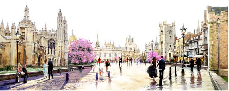 Obraz na plátne Cambridge Street vo svetlých farbách bude zaujímavým doplnkom moderných a minimalistických interiérov. Ide o kvalitnú tlač na odolnom plátne natiahnutom na nosidlách z MDF. Obraz zobrazuje ulicu s mestskými budovami a chodcami