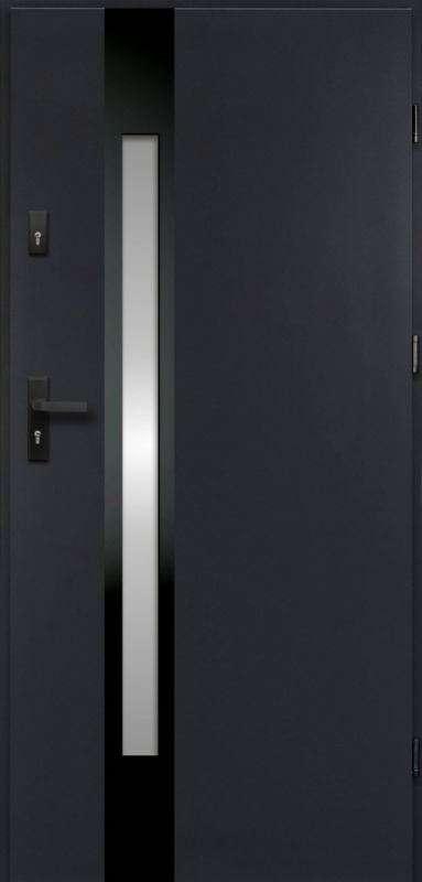 OK Doors Temida Black P55 pravé vonkajšie dvere, antracit, sa vyznačujú odolnosťou a nevšedným vzhľadom. Tmavé, jednoduché a odolné dvere dobre poslúžia v bytoch aj rodinných domoch. Sú vyrobené z odolného plechu potiahnutého dekoračnou fóliou. Dvere sú ľahké a zároveň odolné voči poškodeniu