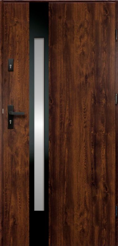 OK Doors Temida Black P55 pravé vonkajšie dvere, tmavý orech, zaisťujú vysokú kvalitu a bezpečnosť. Výrobok je odolný voči UV žiareniu a meniacim sa poveternostným podmienkam. Bol vytvorený pre domy a byty. Sada obsahuje kovanie a tri nastaviteľné pánty