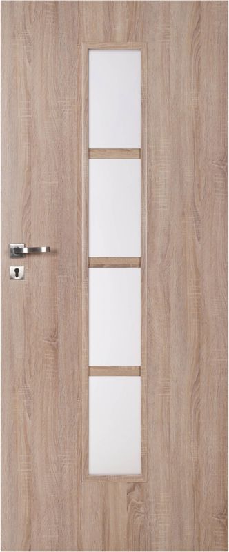 Dvere využijete pri dokončovacích prácach na oddelenie miestností – budú užitočné vo väčšine domácností a firiem. Sú v univerzálnej hnedej farbe, takže pri zmene okolitej farby ich nebudete musieť vymieňať. Verzia so vzorom imitujúcim štruktúru dreva bude dokonalým doplnkom tradičnej miestnosti. Elegantné presklenie dodáva dverám atraktívny vzhľad. Ponúkaný model sa vyznačuje dlhou životnosťou, pretože jeho povrch je pokrytý dyhou, ktorá celok chráni proti oderom. Rozmery produktu si jednoducho prispôsobíte svojim individuálnym očakávaniam, keďže navrhovaný sortiment obsahuje verzie s rôznymi technickými parametrami.