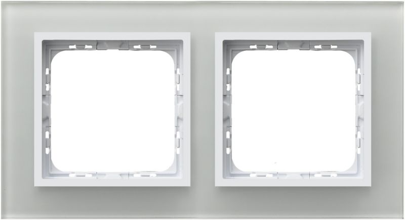 Dvojitý rám As z bieleho skla slúži na orámovanie kontaktov pre dve zástrčky alebo dva spínače štandardných rozmerov. Správne profilované otvory na základni uľahčujú inštaláciu a celok drží pevne na svojom mieste. Rám je vo farbe mliečneho skla, ktoré je veľmi elegantné a má všestranné využitie. V tmavých miestnostiach bude svetlejším prvkom, v bielych poskytne kontaktom univerzálne nastavenie a vo farebných miestnostiach dodá dominantnému tónu jemný protipól. Ďalšou výhodou sivobielej je skutočnosť, že nepráši. Na odstránenie prípadných nečistôt postačí obyčajná handrička alebo kúsok papierovej utierky, pretože povrch je hladký a ľahko umývateľný.
