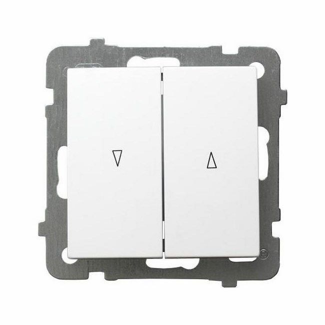 Tu ponúkaný spínač slúži na ovládanie vonkajších žalúzií. Má dve tlačidlá, z ktorých jedno je určené na spúšťanie a druhé na vyťahovanie žalúzií. Na tlačidlách sú symboly, ktoré označujú ich funkcie. Ak chcete roletu zdvihnúť alebo spustiť, podržte stlačené príslušné tlačidlo. Produkt bude užitočný v súkromných domoch alebo apartmánoch, ako aj vo verejných budovách. Automatické ovládanie žalúzií vyžaduje menej úsilia ako manuálne ovládanie. Vďaka závitovým svorkám je inštalácia pohodlná. Gombíky majú univerzálnu bielu farbu. Ku konektoru je potrebné dokúpiť rámik, ktorý sa dá zladiť so štýlom miestnosti. V našom sortimente nájdete široký výber konektorov určených pre rôzne funkcie.