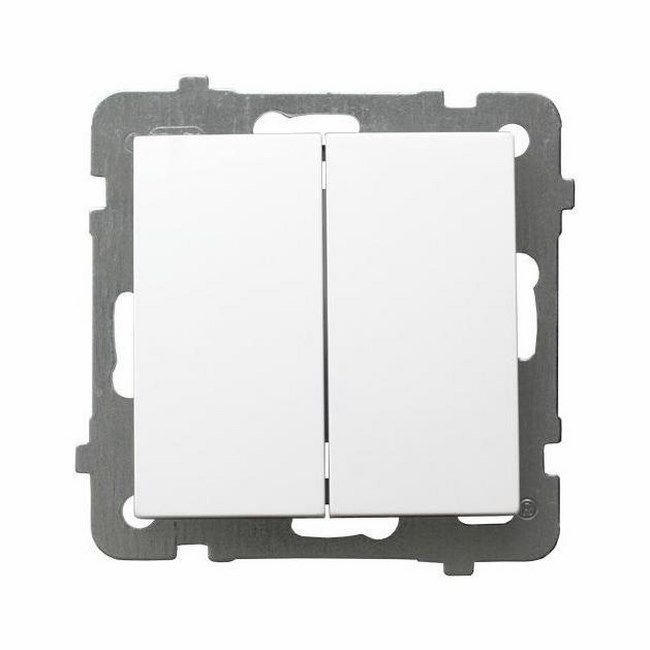Dvojitý spínač slúži na zapnutie dvoch nezávislých okruhov. Produkt bude užitočný v každej miestnosti s dvoma svetelnými zdrojmi, ako aj pre lustre alebo stropné svietidlá s dvoma žiarovkami. Pomocou tohto produktu budete môcť správne ovládať osvetlenie a prispôsobiť ho svojej nálade, dennej dobe a iným faktorom. Zapnutie správneho počtu svetiel tiež pomáha šetriť energiu, čo sa premieta do nižších účtov. Výrobok má stupeň ochrany IP 20, vďaka čomu je pre používateľov bezpečný. Prepínač má biele tlačidlá, ktoré ladia s rôznymi farbami rámu, ktoré sa vyberajú samostatne. V našej ponuke nájdete aj vypínače s tromi kľúčmi a farebnými rámikmi.