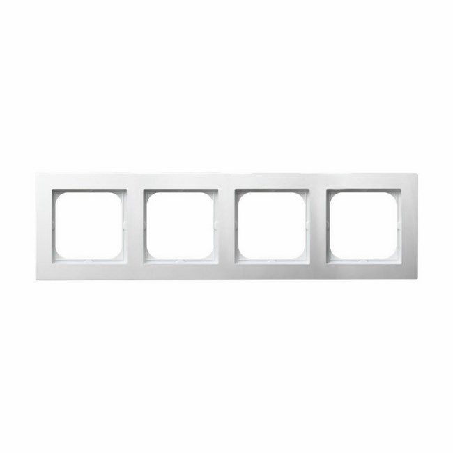 Tu dostupný produkt je štvornásobný rám určený na dokončenie zásuviek a konektorov. Produkt bude dobre fungovať v rôznych miestnostiach, v súkromných domoch aj na verejných miestach. Biely plastový rám pôsobí esteticky a ľahko sa udržiava v čistote.