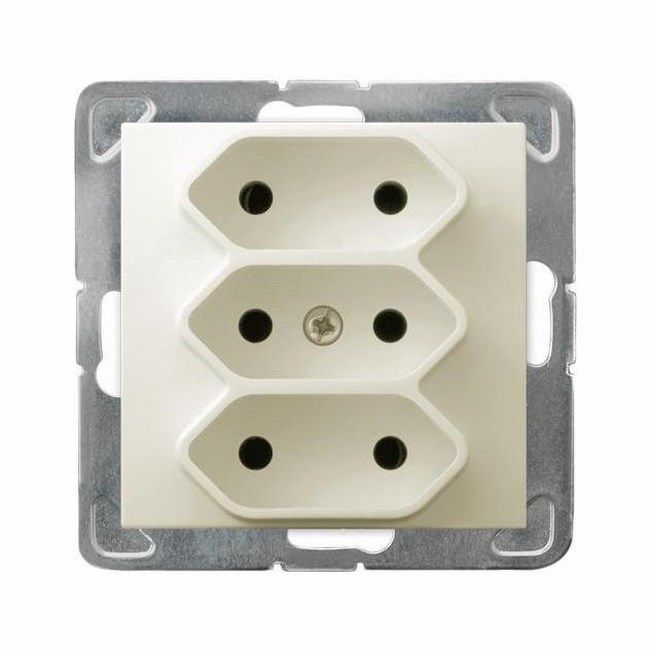 Trojitá zásuvka umožňuje zapojiť tri ploché zástrčky súčasne. Ide o produkt, ktorý je ideálny pre miesta, kde potrebujete pripojiť niekoľko RTV zariadení súčasne. Výrobok je určený na zapustenú montáž. Je vyrobený z materiálov, ktoré zaisťujú primeranú úroveň bezpečnosti pri jeho prevádzke.