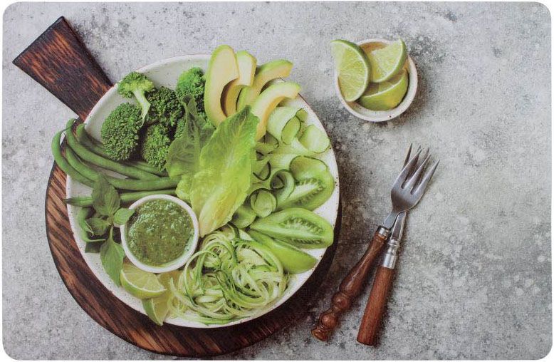Podložka na stôl Greens 43,5 × 28,5 cm sivozelená je spôsob, ako dodať vašej kuchyni novú, sviežu energiu. Výrobok s potlačou zobrazujúcou zelené ovocie oživí každý interiérový dizajn. Estetika podložky ju robí príťažlivou pre deti aj dospelých. Použitím tohto produktu môžete diverzifikovať svoj interiérový dizajn za relatívne nízke náklady. Podložka na stôl Greens sivozelená je vyrobená z plastu - ľahko ju udržíte v čistote. Výrobok nielen ozdobí stôl, ale ho aj ochráni pred nečistotami a poškriabaním. Podložka je súčasťou rodiny Greens. V našej ponuke nájdete aj produkty s inou potlačou a jednofarebné tampóny. Pozývame vás zoznámiť sa so sortimentom