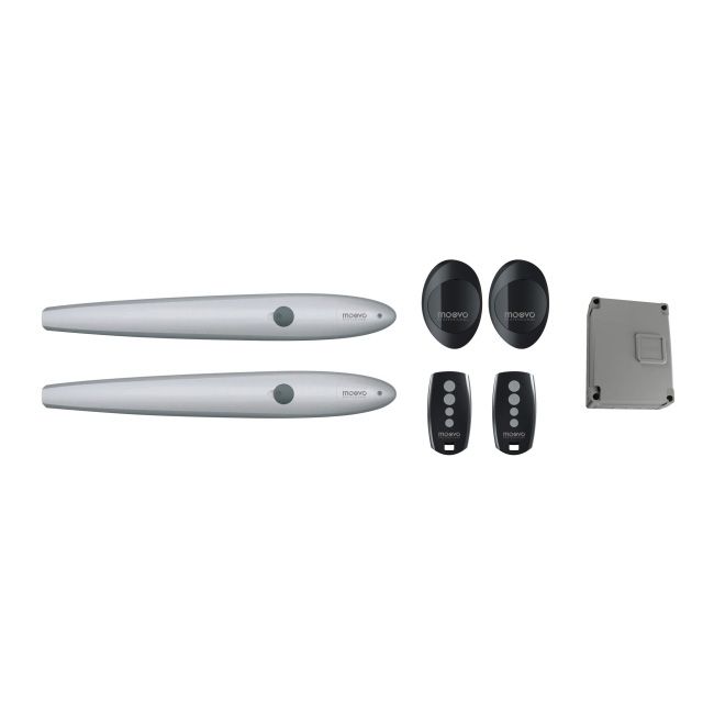 Pohon krídlových brán Moovo je inovatívne riešenie, ktoré dáva svojim užívateľom pocit bezpečia a pohodlia. Súprava je pripravená na bezchybnú prevádzku na dvojkrídlových bránach s bránkou. Automatizácia funguje s pribalenou sadou diaľkových ovládačov, ktoré vám umožnia pohodlne otvoriť bránu bez toho, aby ste opustili auto alebo domov.