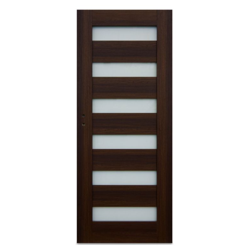 Dvere sú atraktívnou a funkčnou súčasťou zariadenia izieb. Prvok má univerzálnu farbu - je vyhotovený v odtieni orech, takže sa bude dobre vynímať v interiéroch, ktoré sú zariadené tradičným spôsobom. Produkt úspešne podčiarkne atmosféru miestností, ktorým dominujú drevené doplnky, klasické dekorácie a tlmené doplnky. Doska, z ktorej je krídlo dverí vyrobené, dobre imituje drevo a je vysoko odolná voči rôznym druhom mechanického poškodenia. Vďaka tomu vám bude krídlo bez problémov slúžiť dlhú dobu. Špeciálna vrstva poskytuje prvku ochranu proti poškriabaniu povrchu. V ponuke výrobcu je model v rôznych veľkostiach. Vďaka tomu si môžete krídlo dverí prispôsobiť svojim potrebám.