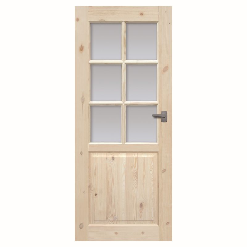 Dverné krídlo Lugano 6s sú drevené izbové dvere s elegantnou kompozíciou v podobe presklenia. Výrobok je vyrobený z masívneho a lepeného borovicového dreva, vďaka čomu si zachováva krásu prírodných zŕn a uzlov. Dvere doplnia rustikálny interiér, ale dobre poslúžia aj vo svetlých miestnostiach, pretože budú ladiť s použitými farbami.
