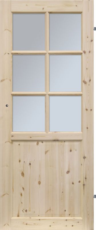 Dverné krídlo Lugano je určené na vnútorné použitie. Využijete ich vo svojom byte, kancelárii alebo obchodných priestoroch. Tento model sa však najčastejšie vyberá do obývačky alebo detskej izby, pretože vďaka 6 preskleniam v jeho hornej časti pôsobí mimoriadne esteticky. Borovicové drevo použité pri výrobe dverí má vlastnosti, ktoré zaručujú ich dlhodobú odolnosť. V prvom rade ide o tuhý materiál, takže celá konštrukcia je stabilná. Navyše je trvácny a odolný voči rôznym poškodeniam. Krídlo dverí má pánty na pravej strane, ale v ponuke je aj reverzný variant. Jeho veľkosť môžete prispôsobiť aj šírke vašej zárubne.