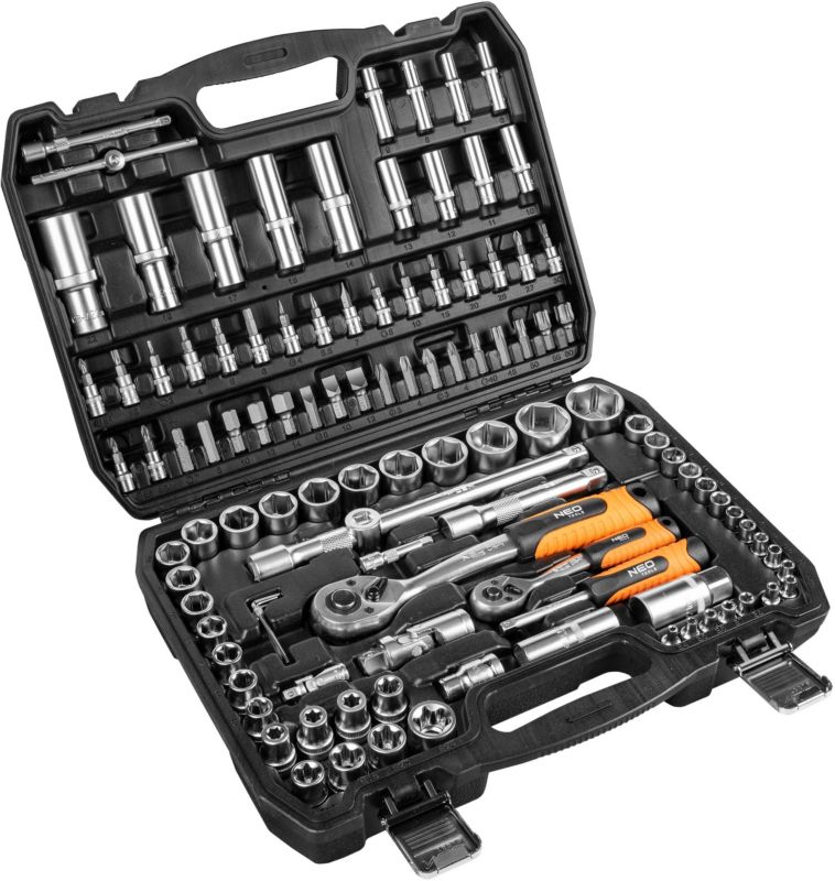 Sada kľúčov Neo ponúka komplexné vybavenie pre profesionálov a domácich majstrov. Praktický kufor obsahuje 108 prvkov vrátane zásuviek, račne a bitov. Nástroje vyrobené z chróm-vanádiovej ocele zaručujú odolnosť a presnosť práce. Ergonomické rukoväte zaisťujú komfort používania a 25-ročná záruka potvrdzuje vysokú kvalitu súpravy.