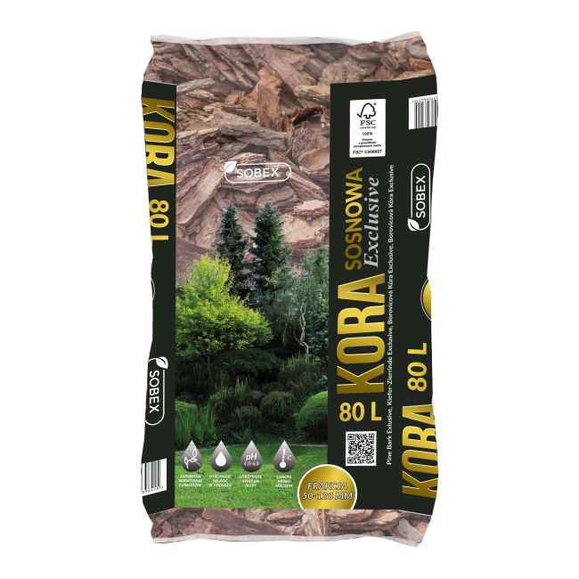 Sobex Exclusive borovicová kôra 50-120 mm 80 l sú veľké a hrubé kusy dreva. Toto zloženie je výsledkom starostlivého ručného triedenia. Veľké kusy kôry sa rozkladajú dlhšie. V dôsledku toho si podstielka vyžaduje menej časté dopĺňanie. Tento produkt bude obzvlášť užitočný pri ochrane zeme na veterných miestach. Hrubšie kúsky ponúkajú väčšiu odolnosť voči vetru. Výrobok bol pripravený s ohľadom na dekoratívne vlastnosti. Vďaka nemu môžu krajinári zvýrazniť vhodné časti záhrady alebo zdôrazniť vzhľad konkrétnych rastlín. Túto kôru by ste mali použiť, ak si plánujete zariadiť záhradu v japonskom štýle. Bude vyzerať skvele okolo veľkých rastlín. Ako každá borovicová kôra, aj Sobex Exclusive sa používa na mulčovanie pôdy.
