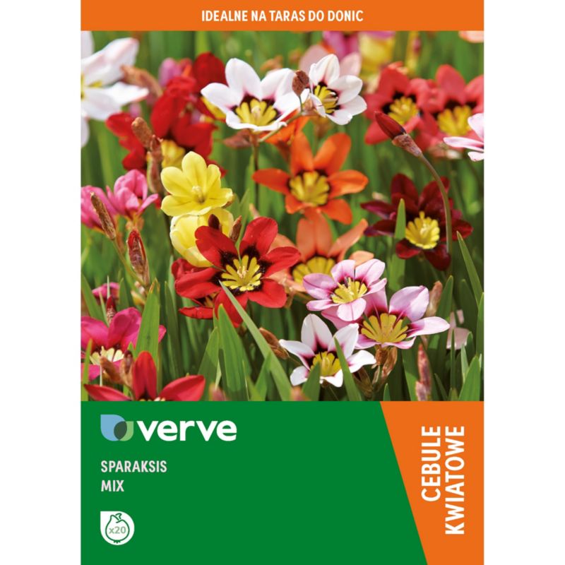 Ak chcete rýchlo doplniť svoju letnú kvetinovú expozíciu, pomôžu vám žiarovky Verve mix sparaksis. Sparaksis je rýchlo rastúca rastlina, ktorá môže úspešne ozdobiť váš balkón alebo terasu. Rovnako dobre sa vyvíja v črepníkoch, nádobách aj v skupinách na záhonoch. Kvitne od júna do augusta. Lesklé, viacfarebné lupienky vyzerajú skvele aj v kyticiach a aranžmánoch z rezaných kvetov. Cibuľky Sparaksis Verve mix potrebujú úrodnú, ľahkú pôdu s neutrálnym pH. Rastú dobre na slnečných polohách. Bez problémov zasadíte a udržíte správnu úroveň hydratácie. Naša rozsiahla ponuka zahŕňa aj ďalšie cibuľoviny, z ktorých vyrastú úžasné kvety!
