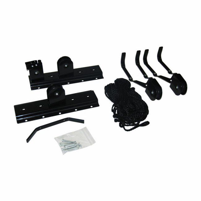 Vešiak na bicykel slúži na pripevnenie k stropu. Jeho použitie ušetrí miesto v izbe alebo garáži – odporúča sa najmä do malých miestností. Pevné držiaky vyrobené z kovu sa postarajú o bezpečné zavesenie bicykla - montážne prvky sú odolné proti veľkej záťaži, takže ich využijete na montáž hliníkových bicyklov a bicyklov z iných materiálov. Sada obsahuje systém kladiek na pripevnenie k stropu a prvok na upevnenie šnúrky, ktorá sa priskrutkuje k stene. Produkt umožňuje rýchle umiestnenie bicykla pod strop. Čierna farba vešiaka je univerzálna. Výrobok je pripevnený k stropu pomocou skrutiek a hmoždiniek. V našej ponuke nájdete aj nástenné vešiaky a držiaky lyží.