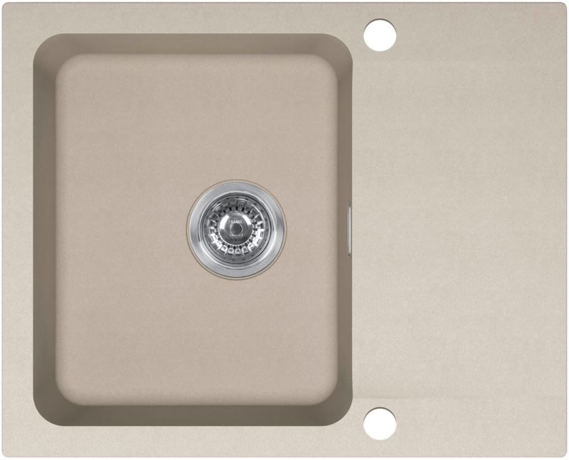 Béžový 1-miskový drez Tectonite Franke Oid splní svoj účel v každom, aj malom byte. Skladá sa z hlavnej komory, kde môžete pohodlne umývať riad a pripravovať zeleninu na ďalšie spracovanie. Na pravej strane je malá polica, kde si môžete odložiť umyté príslušenstvo a kuchynské náčinie.