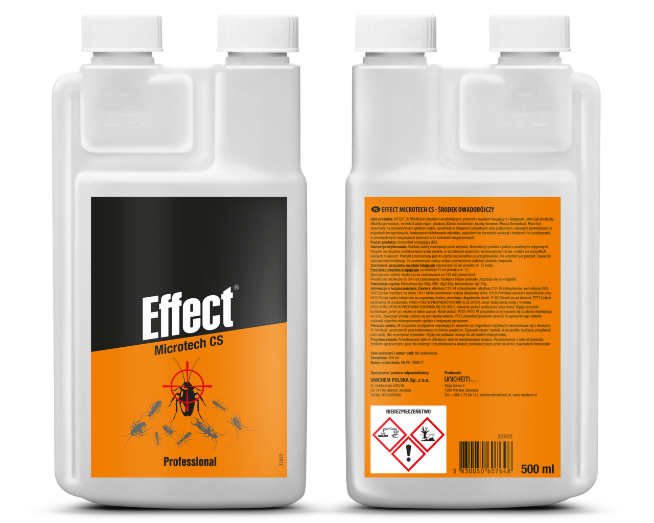 Effect Microtech CS vo forme mikrokapsúl je vhodný na boj s veľkými populáciami lezúceho hmyzu ako aj na preventívne použitie vytvorením insekticídnej bariéry.