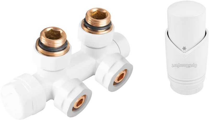 Biely duoplex termostatický set je dôležitým prvkom vykurovacej inštalácie. Vďaka produktu si môžete vo vnútri nastaviť zvolenú teplotu. Zostava vám umožní vytvoriť v miestnosti príjemné podmienky aj v tých najmrazivejších dňoch. Produkt zo série Opticomfort je určený pre použitie s radiátormi V a CV. Prvky súpravy sú vyrobené z mosadze a odolného plastu. Vďaka tomu sú odolné voči vysokým teplotám a budú vám slúžiť dlhé roky. Biely duoplex termostatický set sa vyznačuje moderným dizajnom. Produkt môžete kombinovať s jasným radiátorom. Vďaka tomu zariadite interiér s citom pre detail. V našom sortimente nájdete aj iné farebné prevedenia termostatických setov, napríklad antracit.