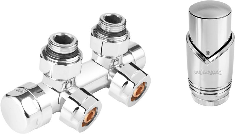 Termostatická sada duoplex chróm je určená pre použitie s radiátormi V a CV. Dôležitým prvkom vykurovacieho systému je mosadz a plast. Vďaka tomu sú prvky radu Opticomfort odolné voči vysokým teplotám a trvácne. Produkt bude plniť svoje funkcie po mnoho rokov. Chrómová termostatická súprava duoplex vám umožní regulovať teplotu v miestnosti, vďaka čomu vytvoríte pre vašu domácnosť komfortné podmienky aj v tých najchladnejších dňoch. Prvky sa vyznačujú moderným dizajnom. Vyberte si chrómovú sadu, ak vám záleží na každom detaile dekoru. V našom sortimente je viac farebných variantov termostatických setov.