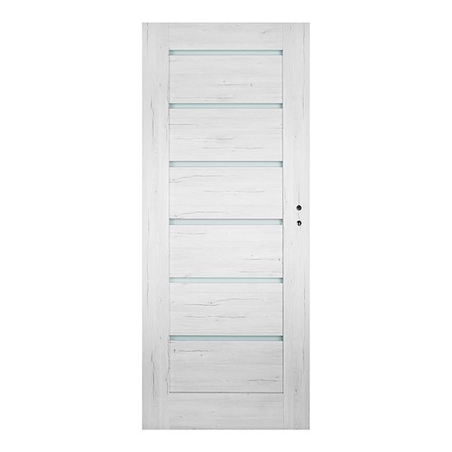Izbové dvere Toreno 80 ľavý strieborný dub odporúčame do vašej pozornosti, ak hľadáte dverné krídlo do obývačky, konferenčnej miestnosti alebo iných reprezentatívnych (nielen) miestností. Výrobok vyzerá mimoriadne atraktívne vďaka modernému dizajnu, pekným farbám a preskleniu. Okná s mliečnym sklom prepúšťajú svetlo, čo bude nepochybnou výhodou, ak vaša predsieň nemá okná. Saténové zasklenie zároveň zanecháva interiér miestností neviditeľný. Izbové dvere Toreno ľavý strieborný dub sú vyrobené z MDF dosky. Krídlo s rámovou konštrukciou je pevné a stabilné. Výrobok pochádza z kolekcie dverí Toreno. V našej ponuke nájdete aj ďalšie modely z tejto série. Pozývame vás zoznámiť sa so sortimentom, ktorý sme pre vás pripravili.