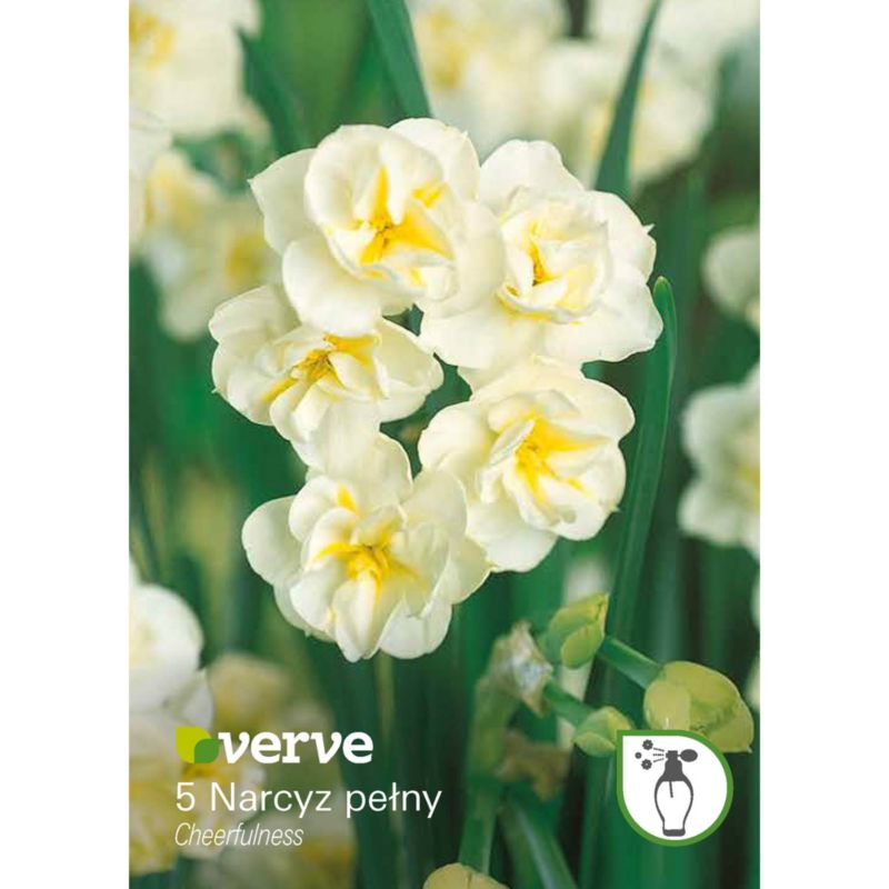 Vysoké cibuľky narcisov Verve Cheerfulness vyrastú v marci do krásnych bielych kvetov, ktoré vydržia až do júna. Sú mimoriadne príjemné na pestovanie - nevyžadujú veľa a poskytujú pekný vzhľad záhonom a balkónom. Cibuľky sa ľahko pestujú a starajú sa o ne, takže sú vhodné aj pre začiatočníkov. Preferujú tienisté miesta.