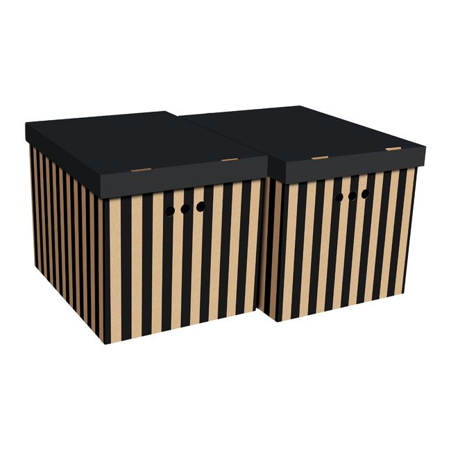 XL ozdobná krabička, čierne pruhy, 2 ks.
