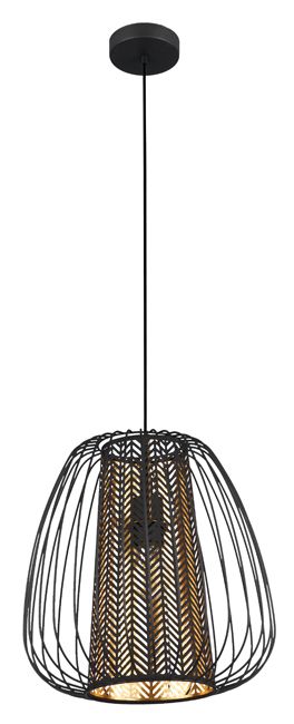Závesná lampa Curasao 1 x E27 čierna splní očakávania milovníkov jednoduchých, no efektných riešení. Ide o prvok, ktorý vám pomôže vyzdobiť interiér vášho domova a zabezpečiť optimálne množstvo svetla. Hlavnou časťou je čierny drôtený košík. Vo vnútri je textilné tienidlo so zlatou povrchovou úpravou. Celé to vyzerá naozaj zaujímavo a hodí sa do mnohých aranžmánov v modernom či industriálnom štýle. Čierna závesná lampa Curasao sa ľahko inštaluje. Ako jeden kus bude dobre fungovať v malých miestnostiach. Do jedálne, kuchyne či obývačky bez problémov nainštalujete dva alebo aj tri kusy. Prevedenie svietidla je pevné a nestratí svoje vlastnosti po mnoho rokov. Na výrobok sa vzťahuje dvojročná záruka.